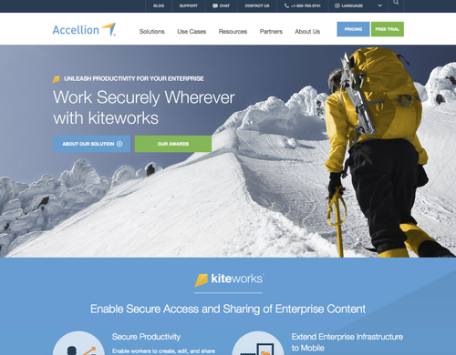 Full website imagery redesign. Conceptual idea that kiteworks acts as your tool outside the office to get work done. Pops of kiteworks yellow enforces that message on different actionable outdoor activities away from the office.